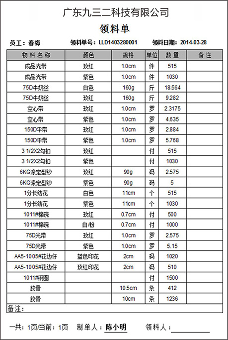 仓库人员按单发料,可跟进需要多少物料、发了多少、还差多少没发、实际比预计多发了多少、一键打印领料单。